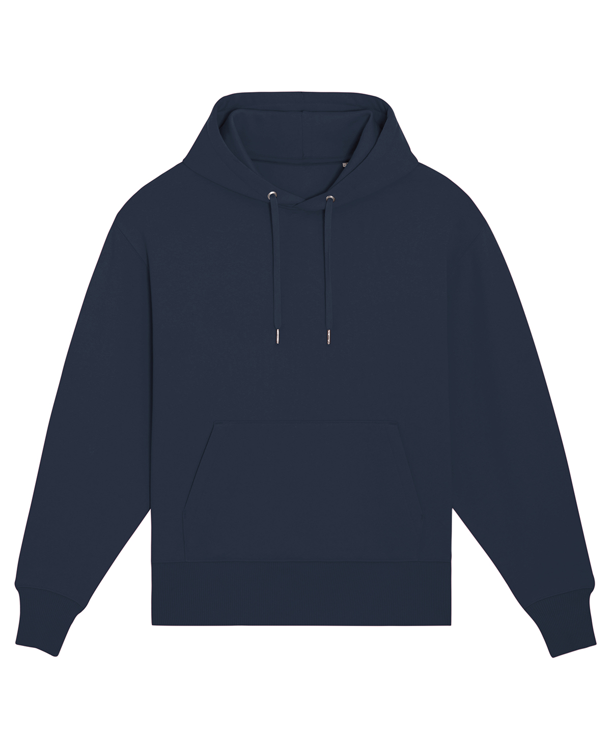 Set-in sleeve. Double layered hood in self-fabric. Flat drawcords in matching body colour with metal tipping. Metal eyelets. Inside single Jersey back neck tape. Self-fabric half moon at back neck. Single needle topstitch at neckline and along hood opening. 2×2 rib at sleeve hem and bottom hem. Armhole, sleeve hem and bottom hem with twin-needle topstitch. Kangaroo pocket at front.